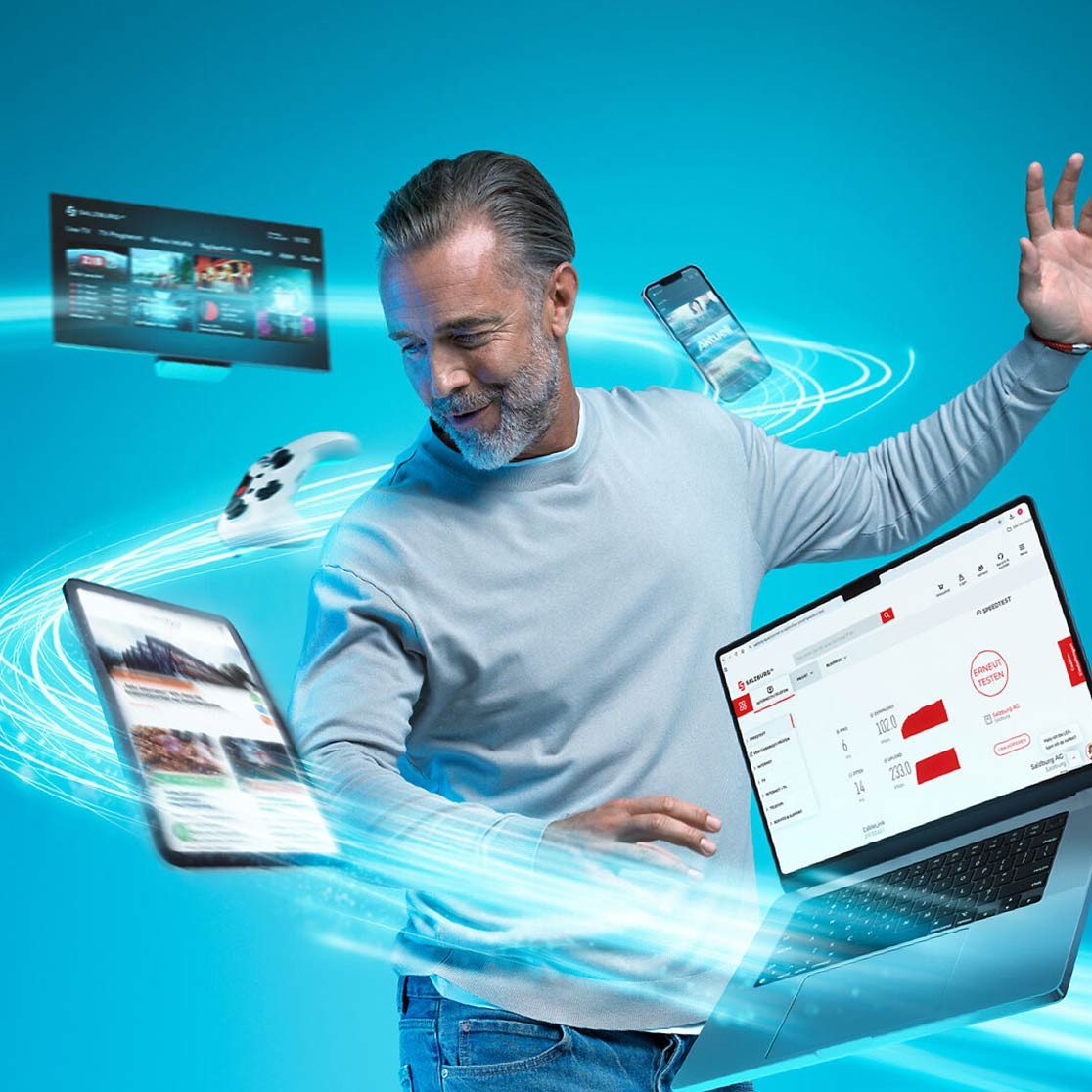 Stand: 12.09.2025 |¹ Gültig für CableLink Internet-Bestandskund:innen bis auf Widerruf (aktueller Bezug eines CableLink Internet-Produktes am angegebenen Herstellungsort bzw. Verbrauchsstelle). 1 Monat kein Grundentgelt beim Wechsel auf ein CableLink Internet-Produkt mit höherer Bandbreite und höherem Grundentgelt. Neue Mindestvertragsdauer 12 Monate. Erfüllt der bestehende WLAN-Router der Kund:innen nicht die technischen Anforderungen des neuen Produktes, erhalten die Kund:innen von der Salzburg AG unentgeltlich einen neuen WLAN-Router. Zu den Angebotsbedingungen