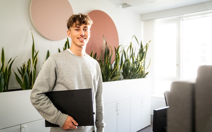 Es ist uns wichtig, dass sich Ihr Kind bei uns rundum sicher fühlt und sowohl persönlich als auch fachlich entfalten kann. Um dies zu unterstützen, bieten wir eine Vielzahl von Leistungen an. Dazu gehören eine fachlich qualifizierte Ausbildung in einem spannenden Umfeld sowie die Möglichkeit zur Job-Rotation, bei der verschiedene Ausbildungsstationen durchlaufen werden. Unsere moderne Ausbildungsstätte ist auf dem neuesten Stand der Technik und wir bieten jährlich zahlreiche Seminare und Workshops für alle Lehrjahre an. Im ersten Lehrjahr sind das beispielsweise ein umfangreiches Onboarding, eine Unternehmenspräsentation oder ein Workshop zum Thema Selbstorganisation. Im zweiten Lehrjahr stehen vor allem Resilienz-Kompetenzen sowie der sichere Umgang mit Finanzen im Vordergrund.