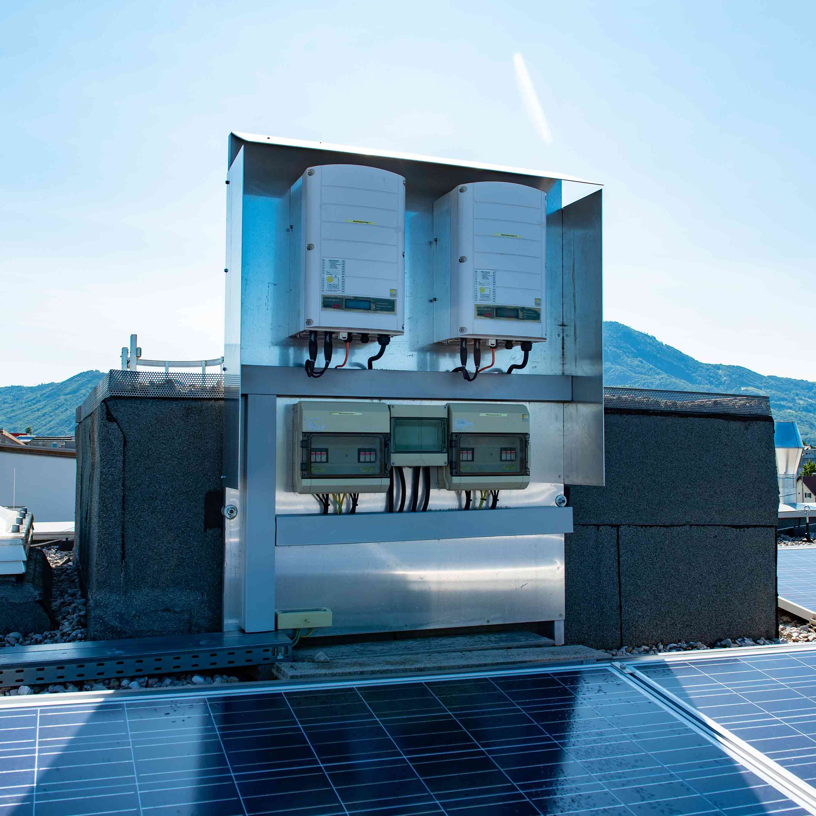 Die Solarenergie wird zuerst in Wechsel-, für die Speicherung in Gleich- und bei der Entnahme wieder in Wechselstrom umgewandelt. Photovoltaik- und Batterie-Wechselrichter sind dabei zwei separate Geräte.