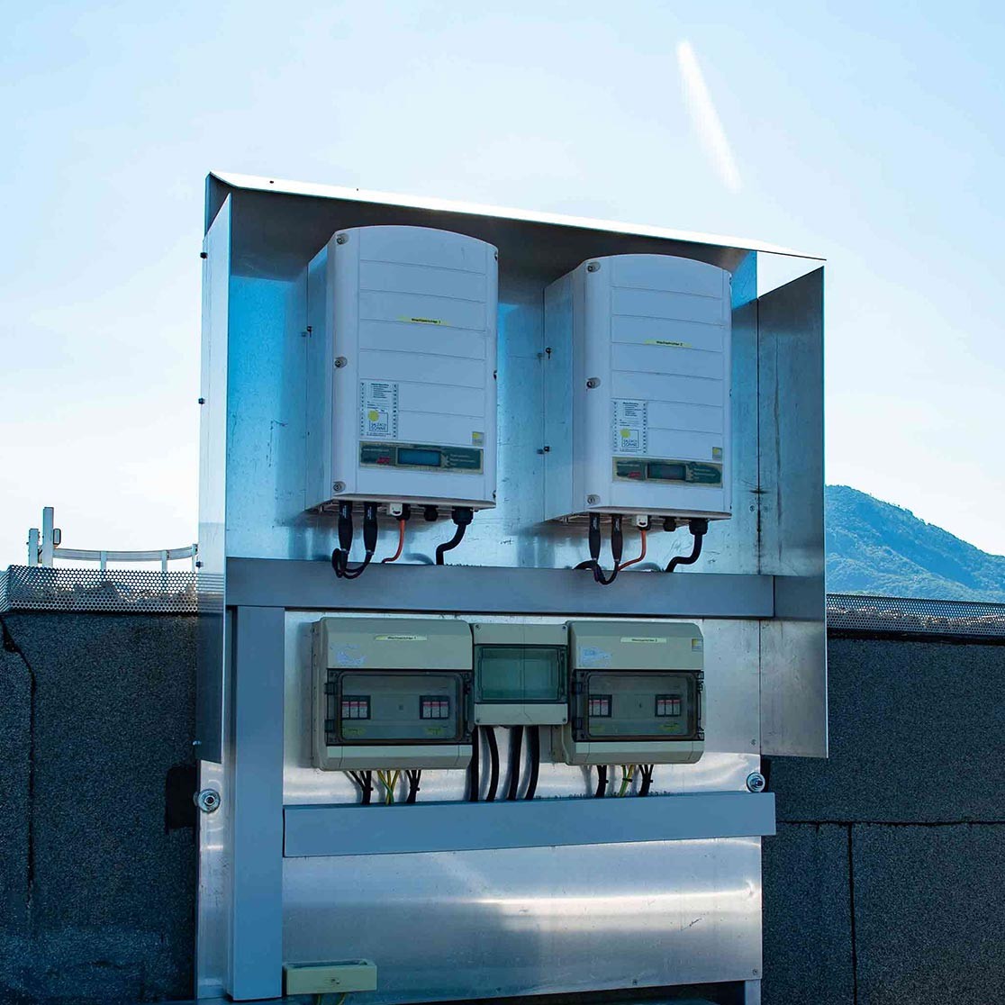 Die Solarenergie wird zuerst in Wechsel-, für die Speicherung in Gleich- und bei der Entnahme wieder in Wechselstrom umgewandelt. Photovoltaik- und Batterie-Wechselrichter sind dabei zwei separate Geräte.
