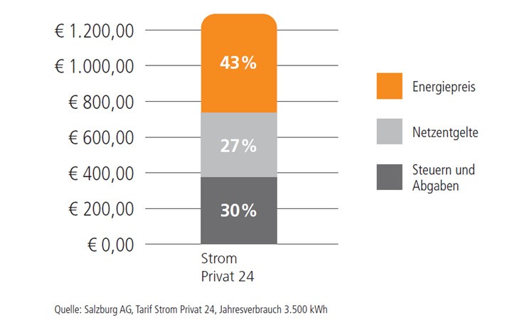 Nur den Energiestrompreis bestimmt die Salzburg AG, die Netzgebühren werden von der E-Control festgelegt, die Steuern und Abgaben vom Gesetzgeber.